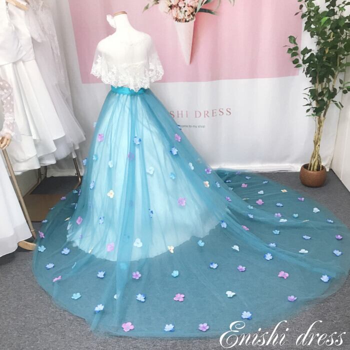 オーバースカート 花柄 サッシュベルト付き チュール 色変更可 ウェディングドレス 結婚式 披露宴