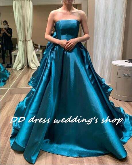 パーティードレス 青 ベアトップ 光沢サテン 上品! 憧れのドレス
