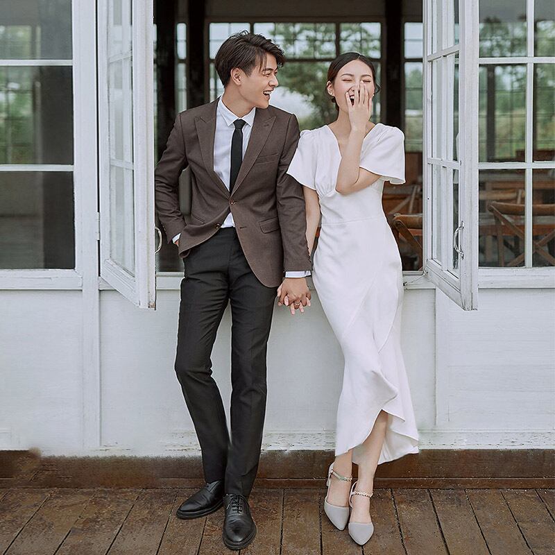 ウェディングドレス 花嫁 半袖 二次会 パーティードレス 前撮り ドレス ブライダル ロングドレス シンプル レディース ワンピース セクシー vネック 結婚式