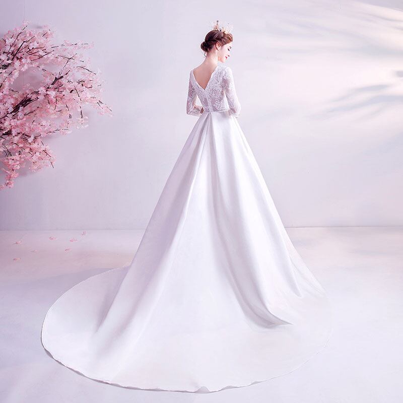 ウエディングドレス 七分袖 二次会 wedding dress 上品 ブライダル パーティードレス サテン プリンセス ロングドレス お嬢様 刺繍