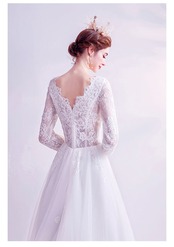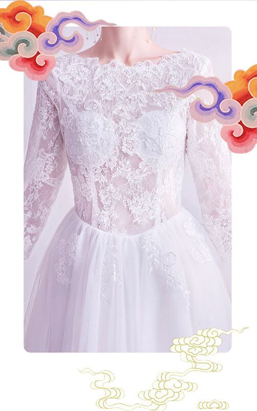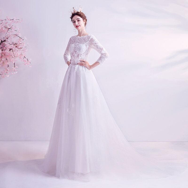 ウエディングドレス 七分袖 二次会 wedding dress 上品 ブライダル パーティードレス プリンセス ロングドレス お嬢様 刺繍
