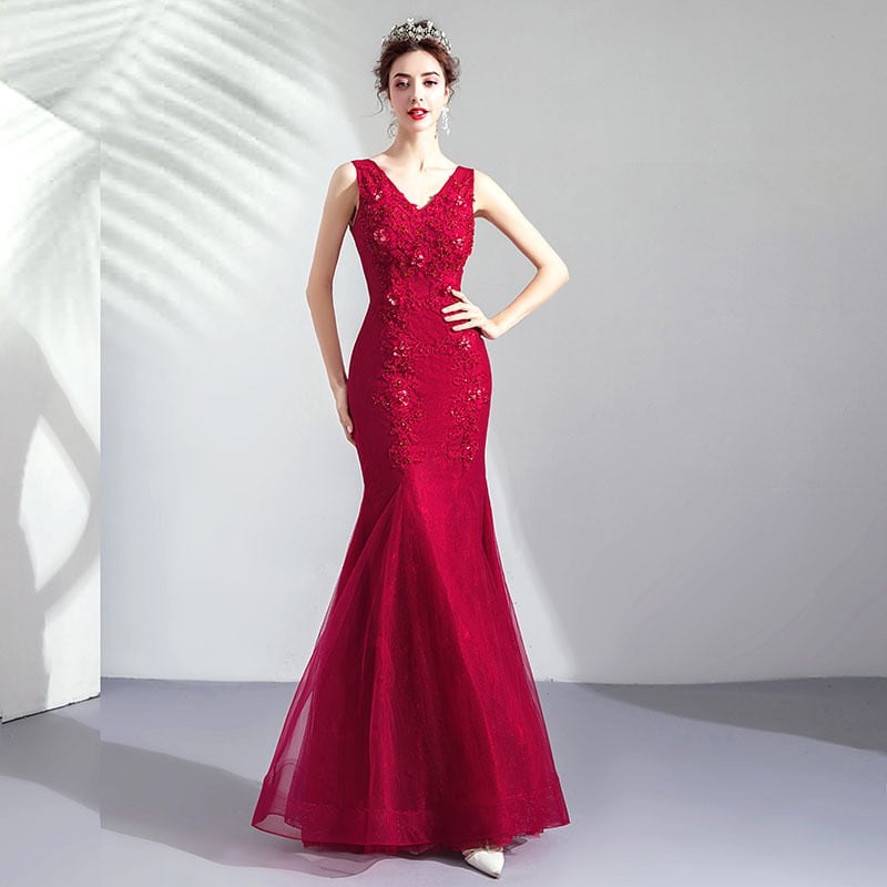 カラードレス 赤 マーメイドラインドレス 演奏会用ロングドレス 花嫁 二次会