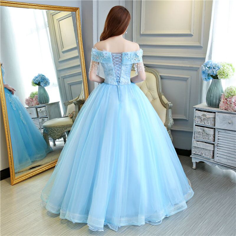 カラードレス パーティードレス オフショルダー 成人式 ロングドレス 水色 刺繍