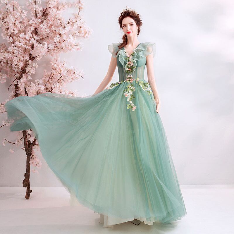 カラードレス グリーン 演奏会用ロングドレス 花嫁 二次会ドレス お嬢様 ウェディングドレス 結婚式