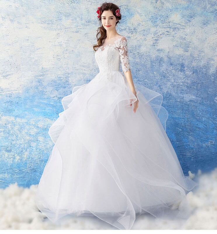 ウエディングドレス 花嫁 二次会 五分袖 wedding dress ブライダル ワンピース ロングドレス お嬢様 結婚式