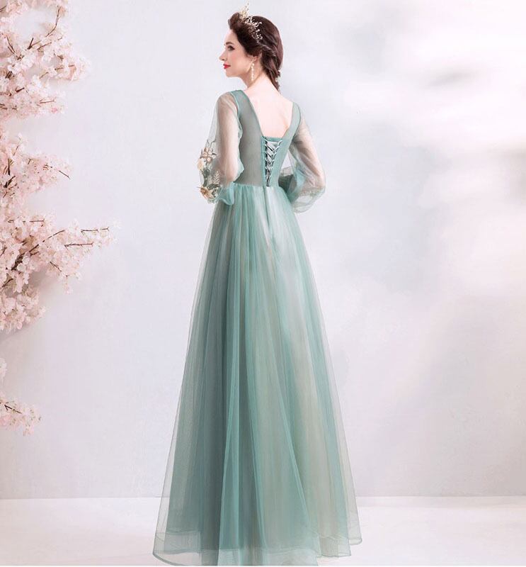 カラードレス グリーン 長袖 演奏会用ロングドレス 花嫁 二次会ドレス ウェディングドレス 結婚式
