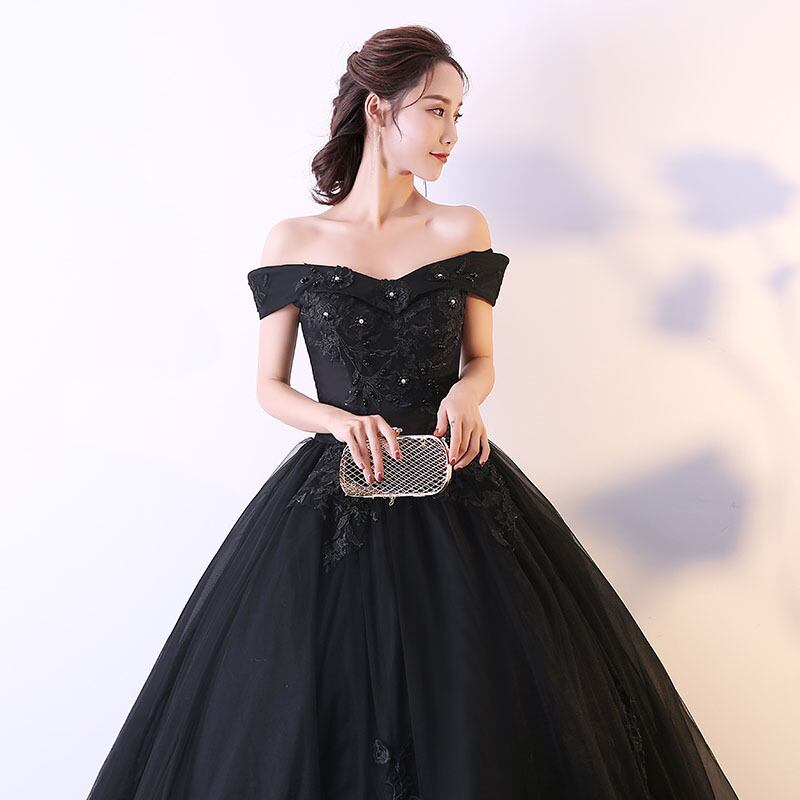 カラードレス ステージ 衣装 ブラック 演奏会用ドレス ロングドレス 上品 プリンセスラインドレス 黒 お姫様