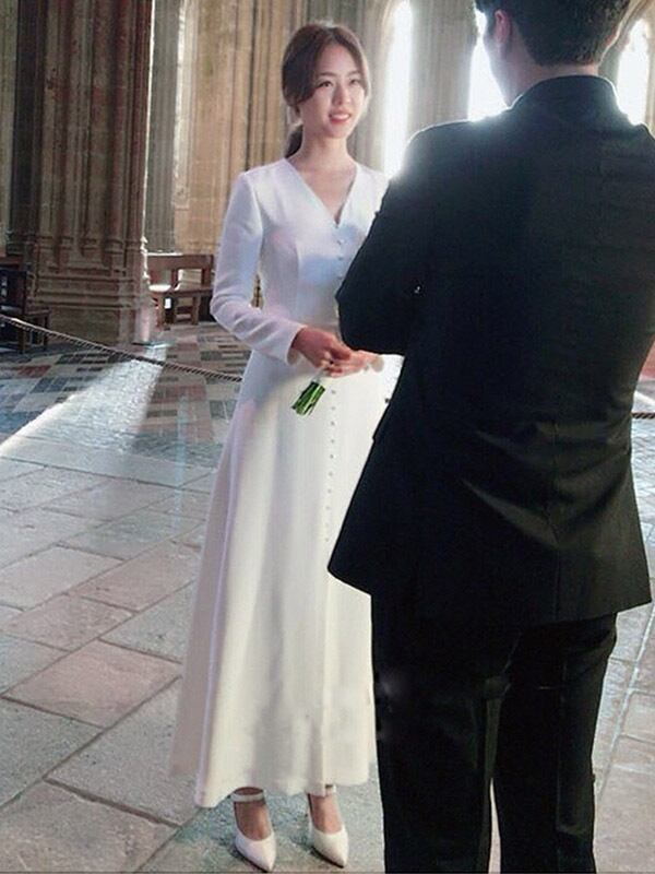ウェディングドレス 花嫁 長袖 二次会 前撮り ドレス 海外挙式 シンプル パーティードレス 挙式