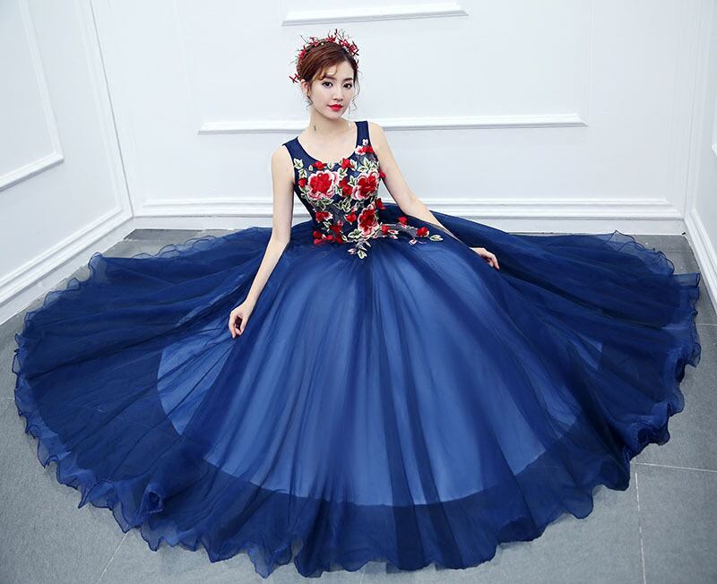 カラードレス ステージ 衣装 ネイビー 演奏会用ドレス ロングドレス 上品 プリンセスラインドレス お姫様