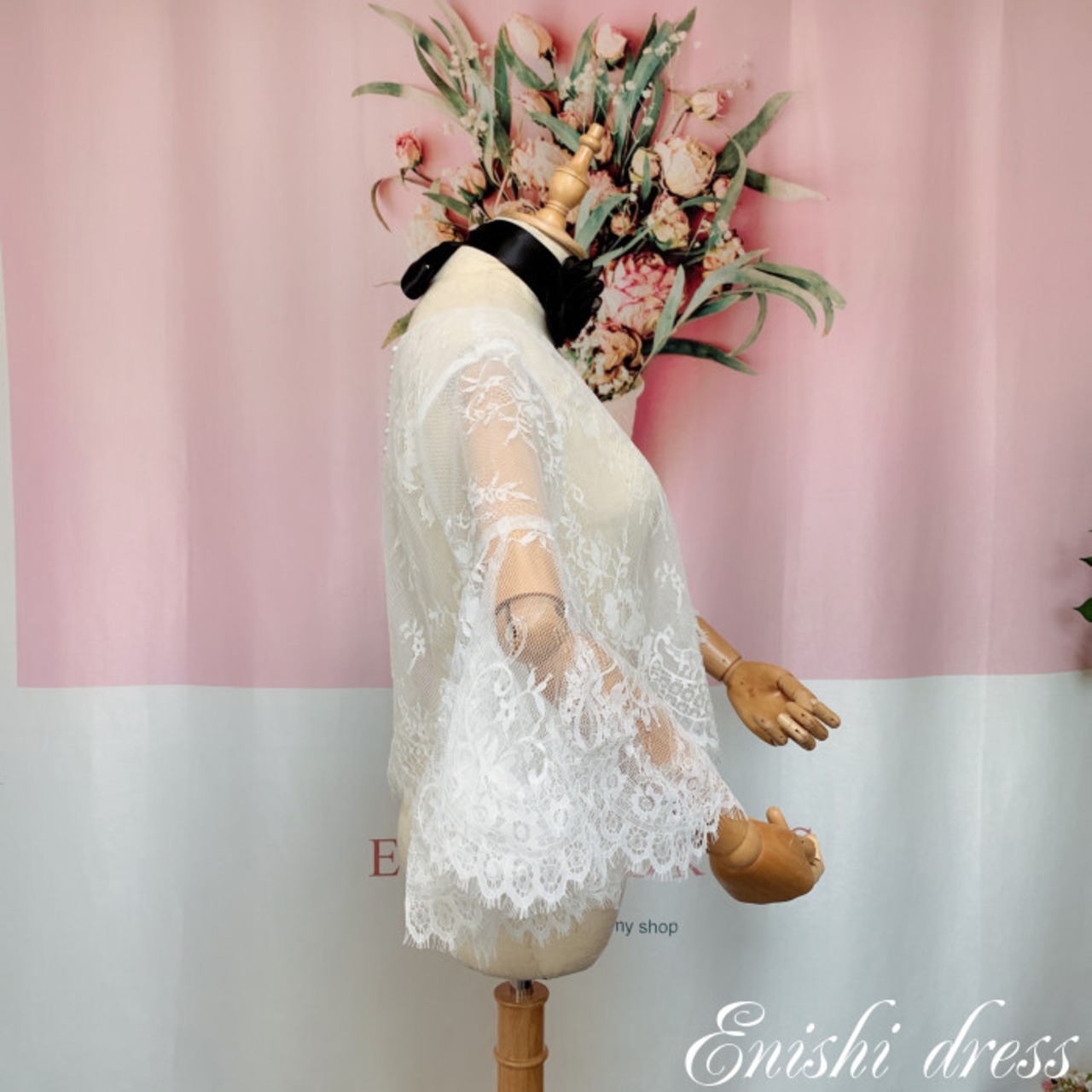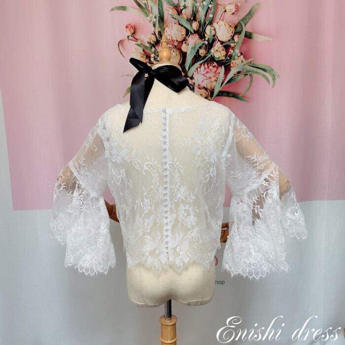 ウェディング ボレロ 袖あり パールボタン 結婚式 披露宴 二次会 前撮り