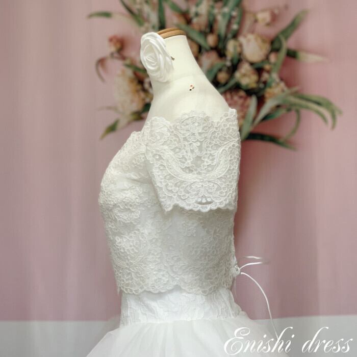 ウェディングドレス レース ボレロ オフショルダー 袖あり 編み上げ フリーサイズ 二次会 花嫁