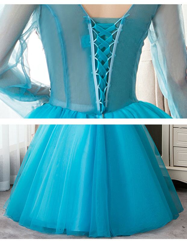 ステージ 衣装 長袖 演奏会用ドレス ロングドレス ブルー 上品 プリンセスラインドレス ウエディングドレス 花嫁 二次会 結婚式