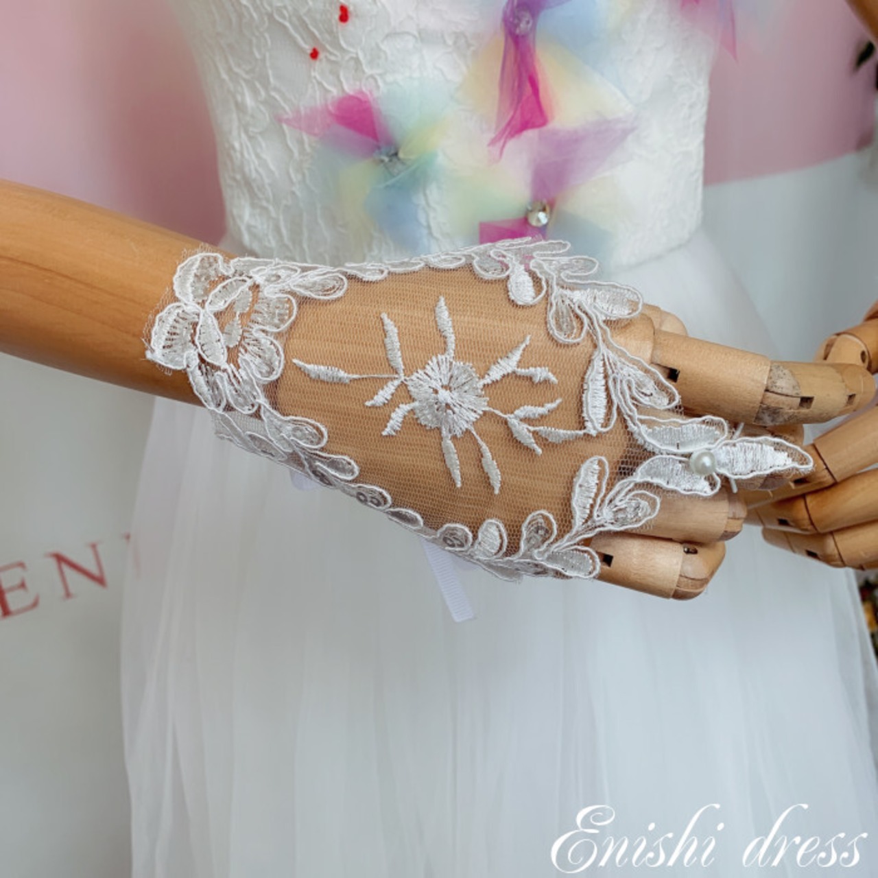 ウェディンググローブ レースグローブ ハンドメイド パール フリーサイズ 二次会 花嫁