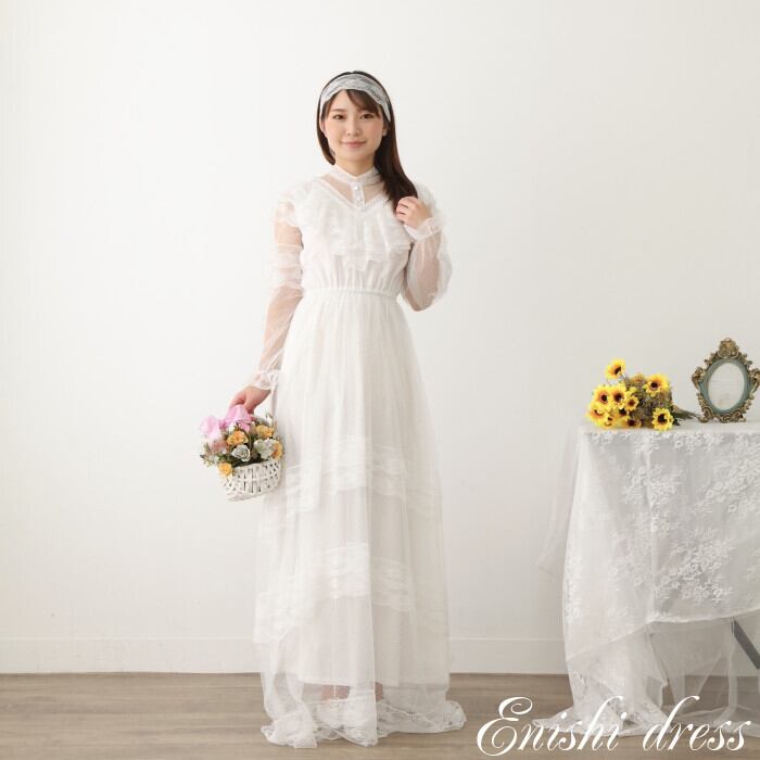ウェディングドレス 長袖 レトロ ハイネック ビンテージ レース 結婚式 披露宴
