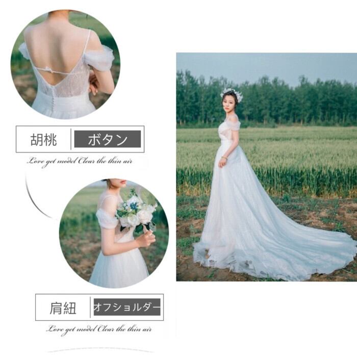 ウェディングドレス エンパイア オフショルダードレス 肩紐 オフホワイト 二次会 花嫁 ドレス 前撮り 後撮り