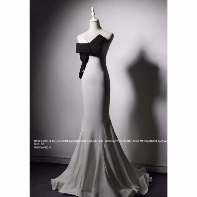 パーティードレス ホワイト 光沢サテン マーメイドライン ロングドレス