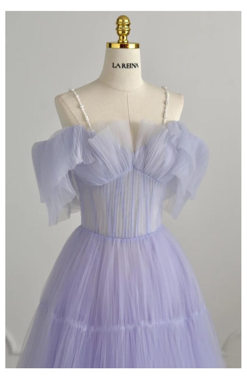 パーティードレス 紫青 キャミソール ソフトチュール プリンセスライン ロングドレス