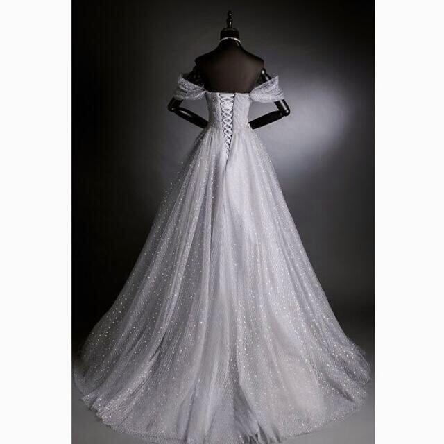 パーティードレス グレー オフショルダー 花嫁 2次会 撮り