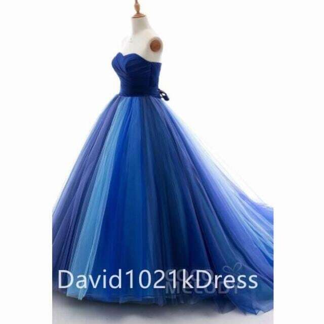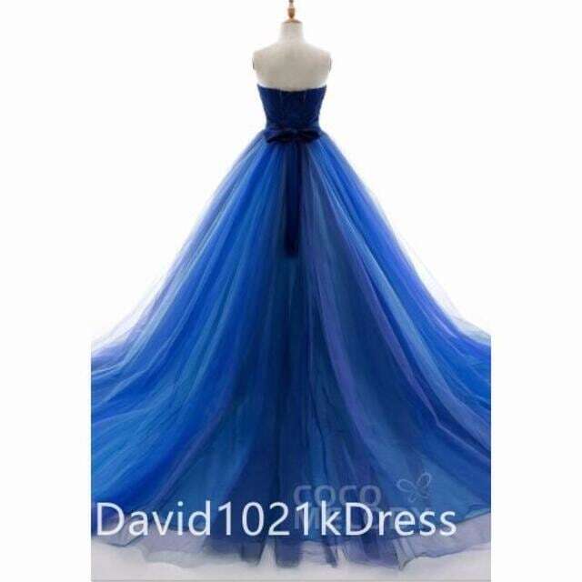 青/ブルー カラードレス ソフトチュール ベアトップ 発表会