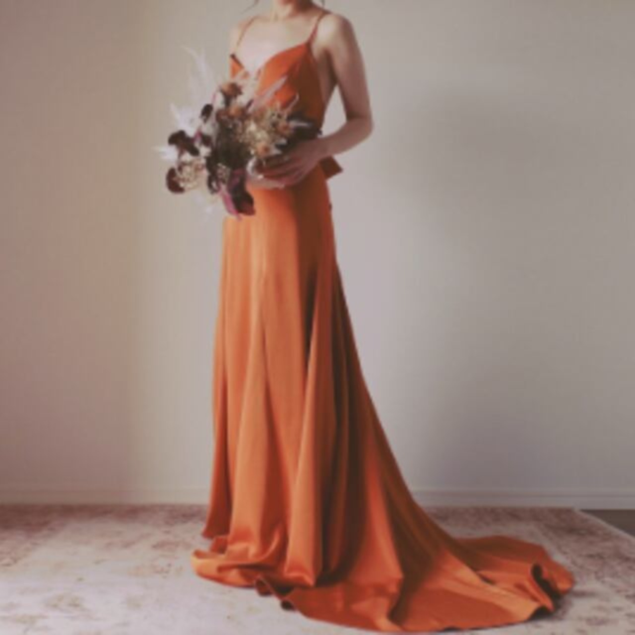 テラコッタ色 カラードレス 背中見せ キャミソール 前撮り 挙式ドレス