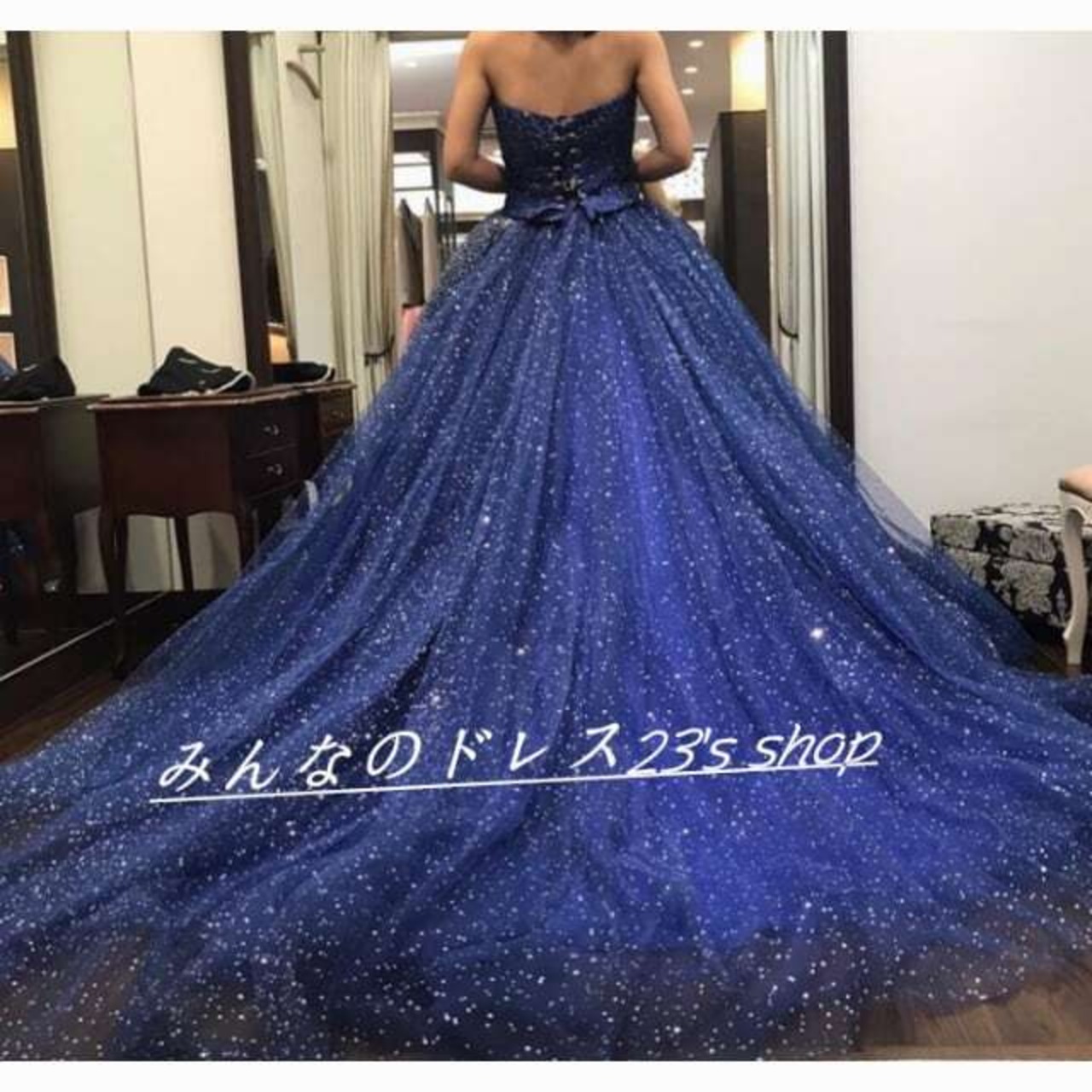 カラードレス 紺/ネイビー キラキラチュール ベアトップ 結婚式