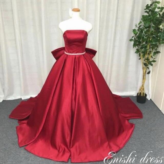 ボルドー色 カラードレス 大きなリボンベアトップ 結婚式 二次会 前撮り