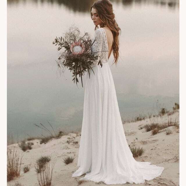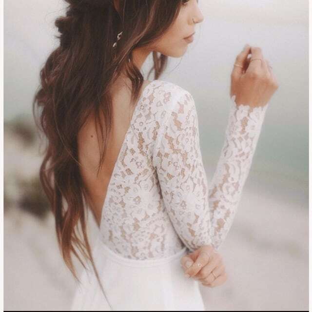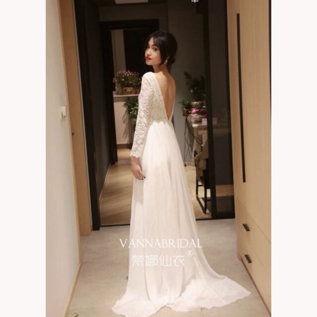 レースウェディングドレス トレーン 背中見せ Vネックドレス