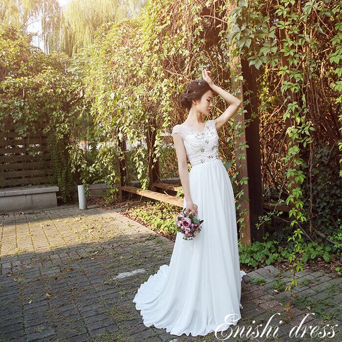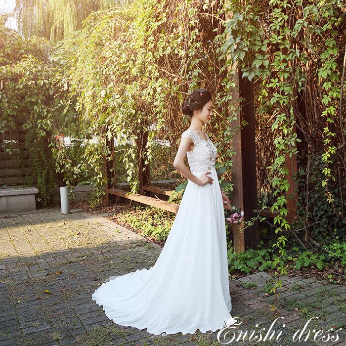 ウェディングドレス シフォンドレス 手縫い 真珠 パール ビーズ 装飾 飾り アクセサリー Vネック