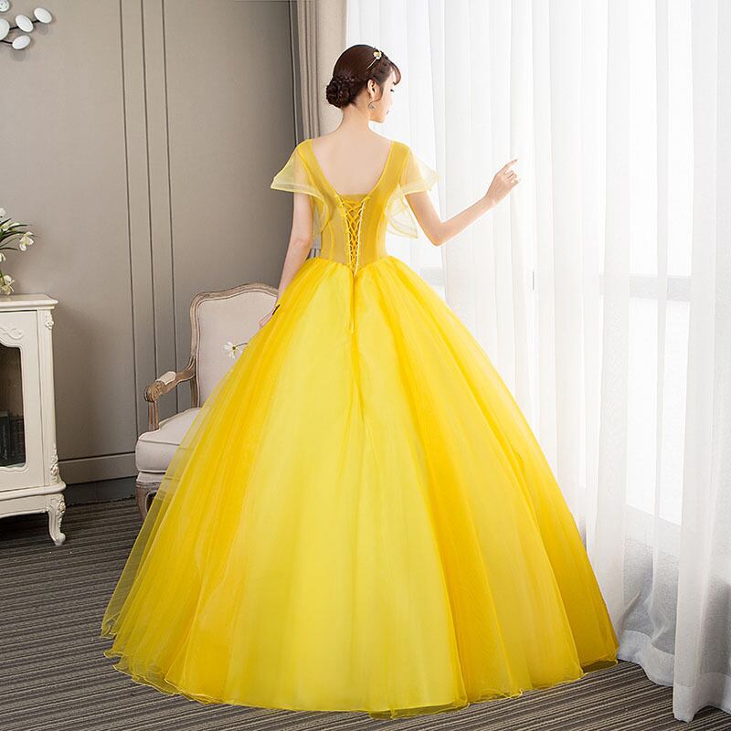 ステージ 衣装 イエロー 演奏会用ドレス ロングドレス 上品 プリンセスラインドレス 花嫁 二次会 結婚式 成人式 フォーマルドレス パーティードレス 刺繍
