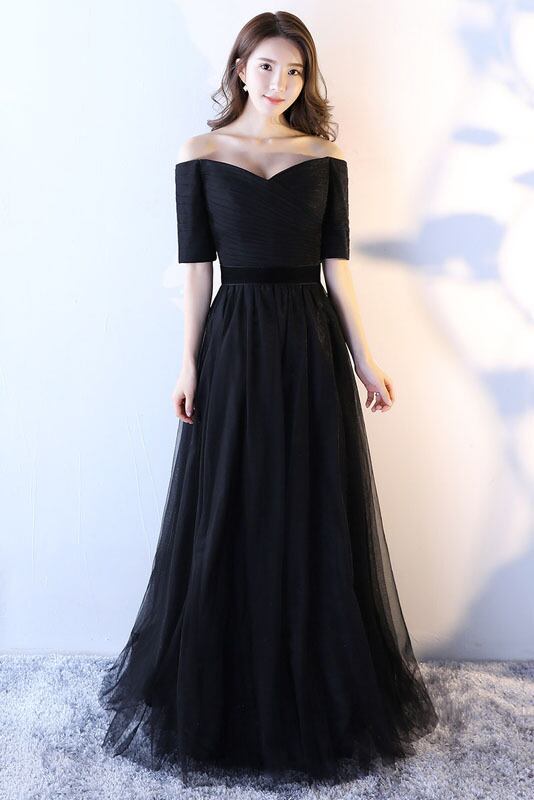 ロングドレス 半袖 演奏会 カラードレス ブラック 花嫁 カクテルドレス 結婚式 上品 パーティードレス 黒 二次会 イブニングドレス お呼ばれ 海外挙式
