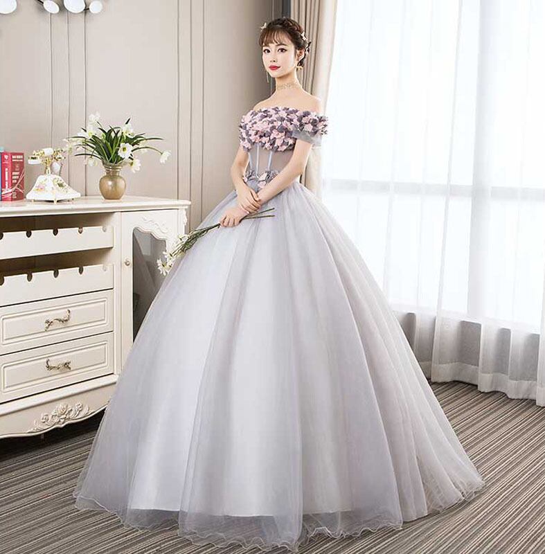 ステージ 衣装 演奏会用ドレス グレー ロングドレス 上品 プリンセスラインドレス オフショルダー パーティードレス 花嫁 二次会 結婚式