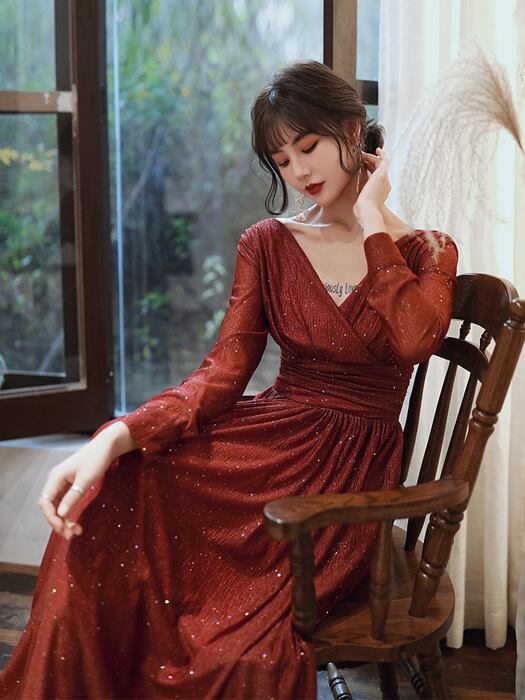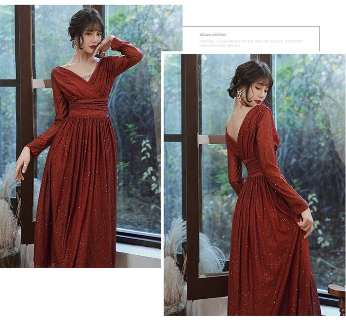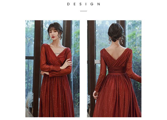ロングドレス カラードレス 長袖 赤 パーティードレス 花嫁 フォーマルドレス 結婚式 海外挙式 カクテルドレス レッド イブニングドレス 二次会 優雅