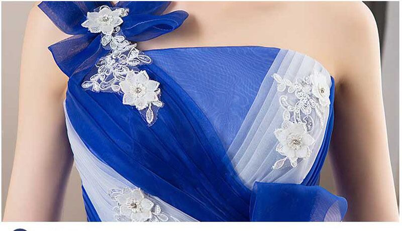 ステージ 衣装 演奏会用ドレス 水色 ロングドレス 上品 花 ワンショルダー プリンセスラインドレス ブルー ウエディングドレス 花嫁 二次会 結婚式 成人式