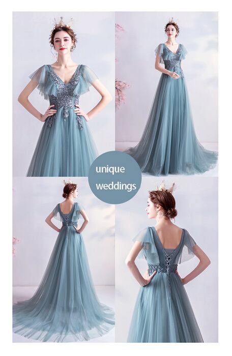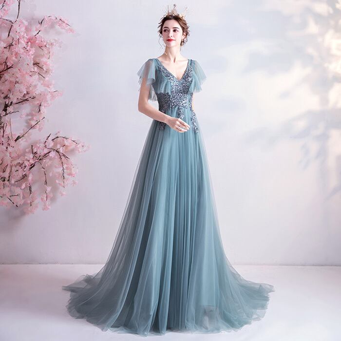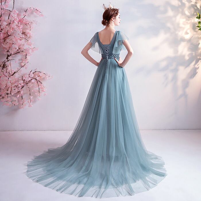 カラードレス ロングドレス 花嫁 パーティードレス ウェディングドレス 演奏会用 ロングドレス Aライン 舞台衣装 おしゃれ ステージ衣装 トレーン Vカット 海外挙式