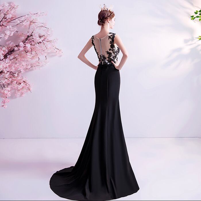 カラードレス ロングドレス 花嫁 お嬢様 パーティードレス 上品 ウェディングドレス 演奏会用 ロングドレス Aライン 舞台衣装 ステージ衣装 ブラック 海外挙式 二次会