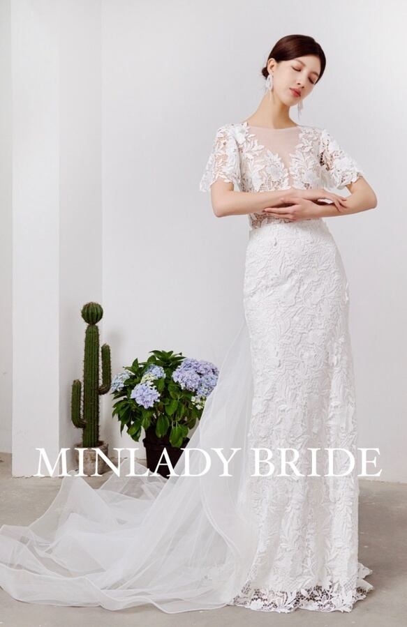 総レース バックリボン マーメイド ウェディングドレス ma506