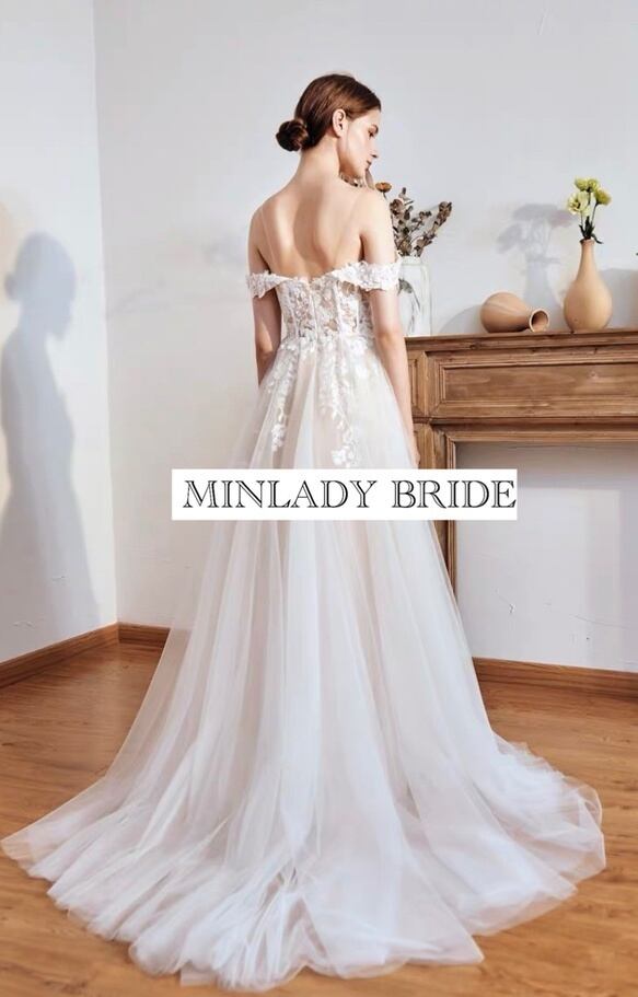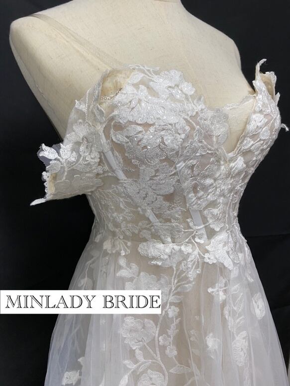オフショルダー 花柄刺繍 Vネックウェディングドレスma108