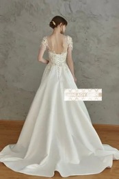 【新品】リーフ刺繍 袖付き Aライン ウェディングドレス ma457