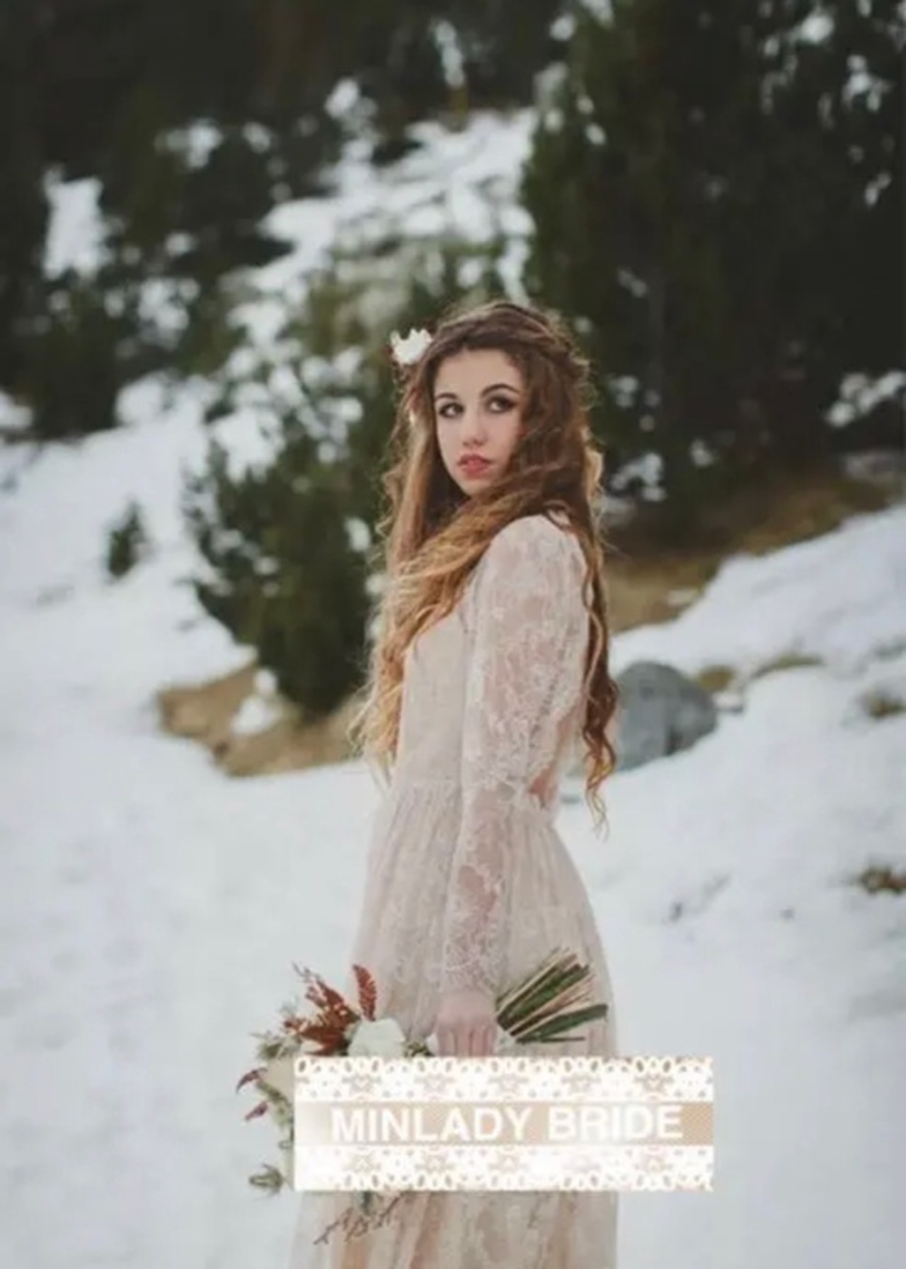 【新品】総レース BOHO クールネック ウエディングドレス #ma082
