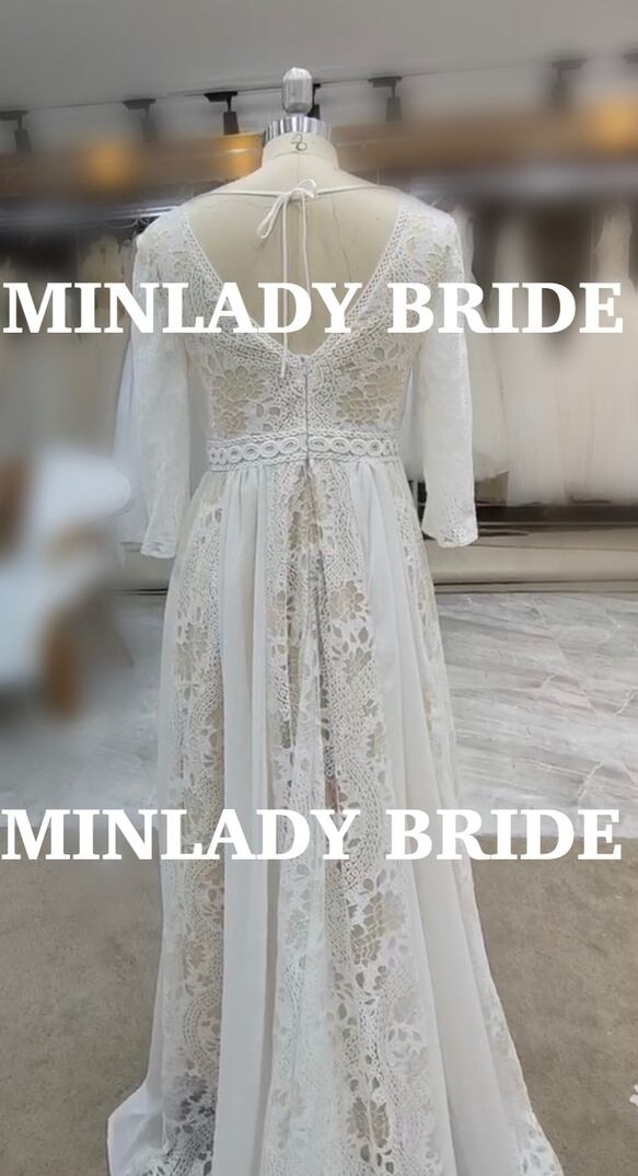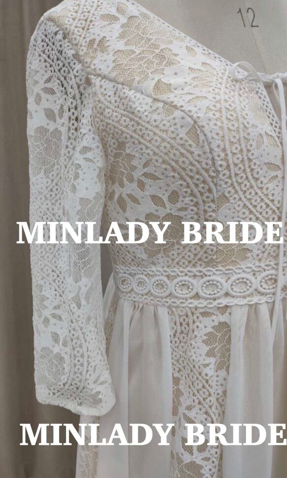 【サイズオーダー無料】BOHO 総レース ウエディングドレス ca100