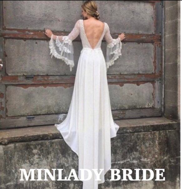 【新品】ボヘミアン BOHO 袖コンシャス ウェディングドレス 長袖ma281