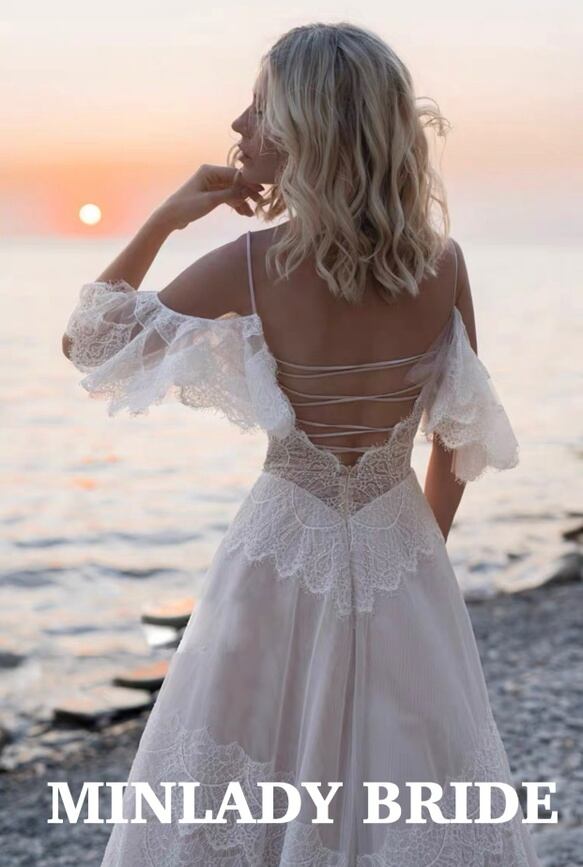 【新品】ボヘミアン キャミソール オフショルダー ウェディングドレスma424