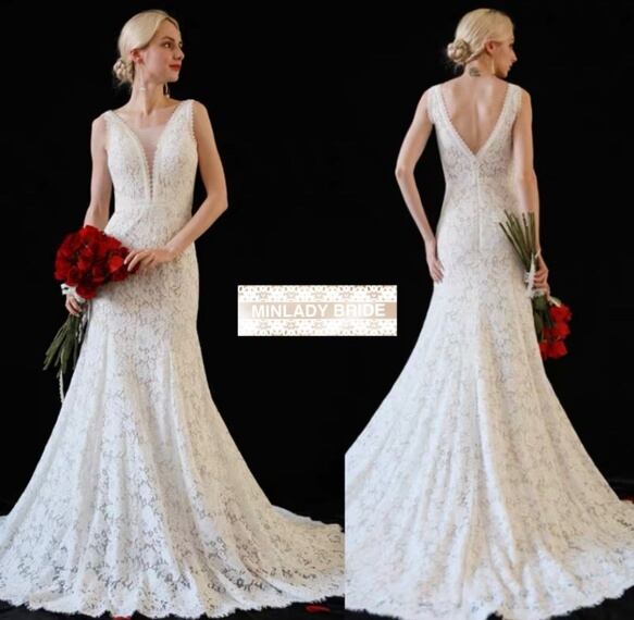 【新品】総レース Vネック マーメイド ウェディングドレス #ma421