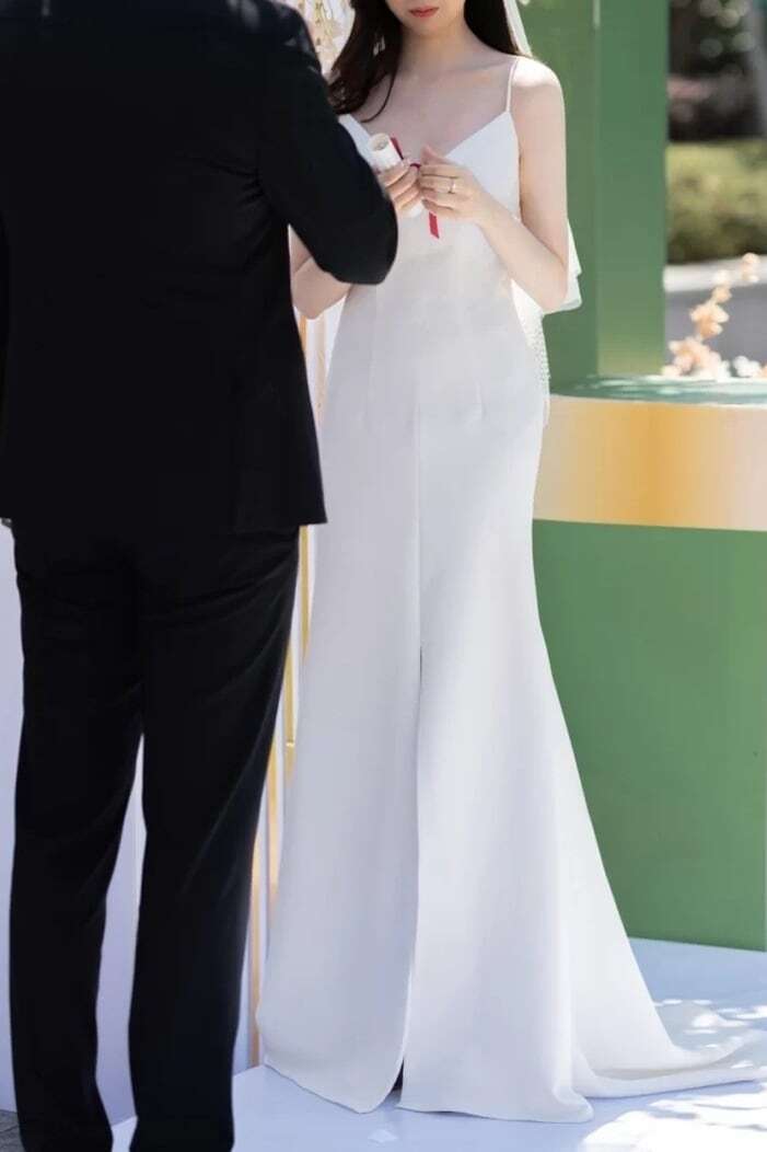 ウエディングドレス オフホワイト スリット 光沢サテン 前撮り ロングドレス