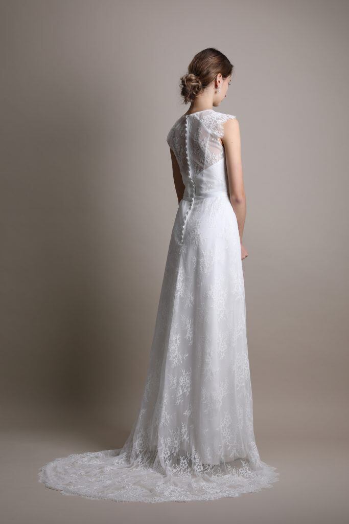 ウエディングドレス ラウンドネック 純白レース ミニトレーン/短トレーン