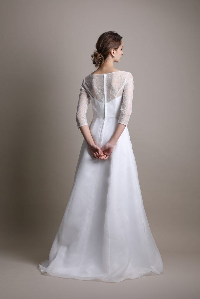 ウエディングドレス クルーネック 七分袖丈 トレーン/ロング