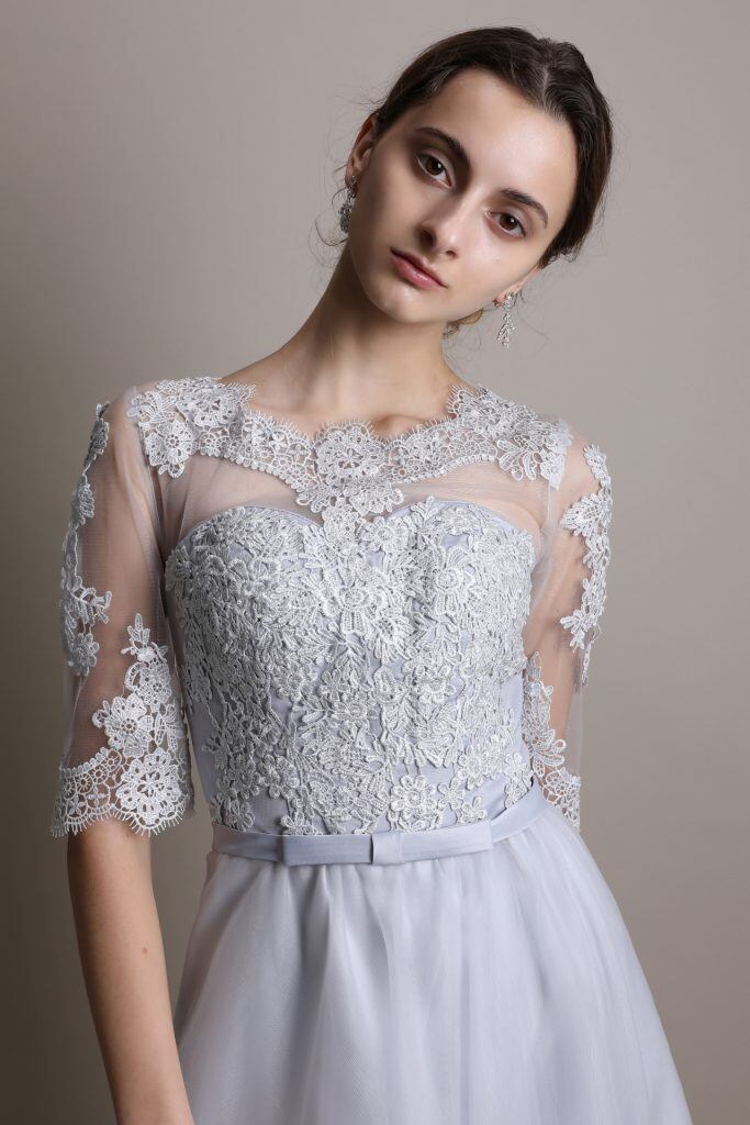 カラードレス オーダーメイド可能 上品透け袖 ビスチェドレス チュールスカート ロング