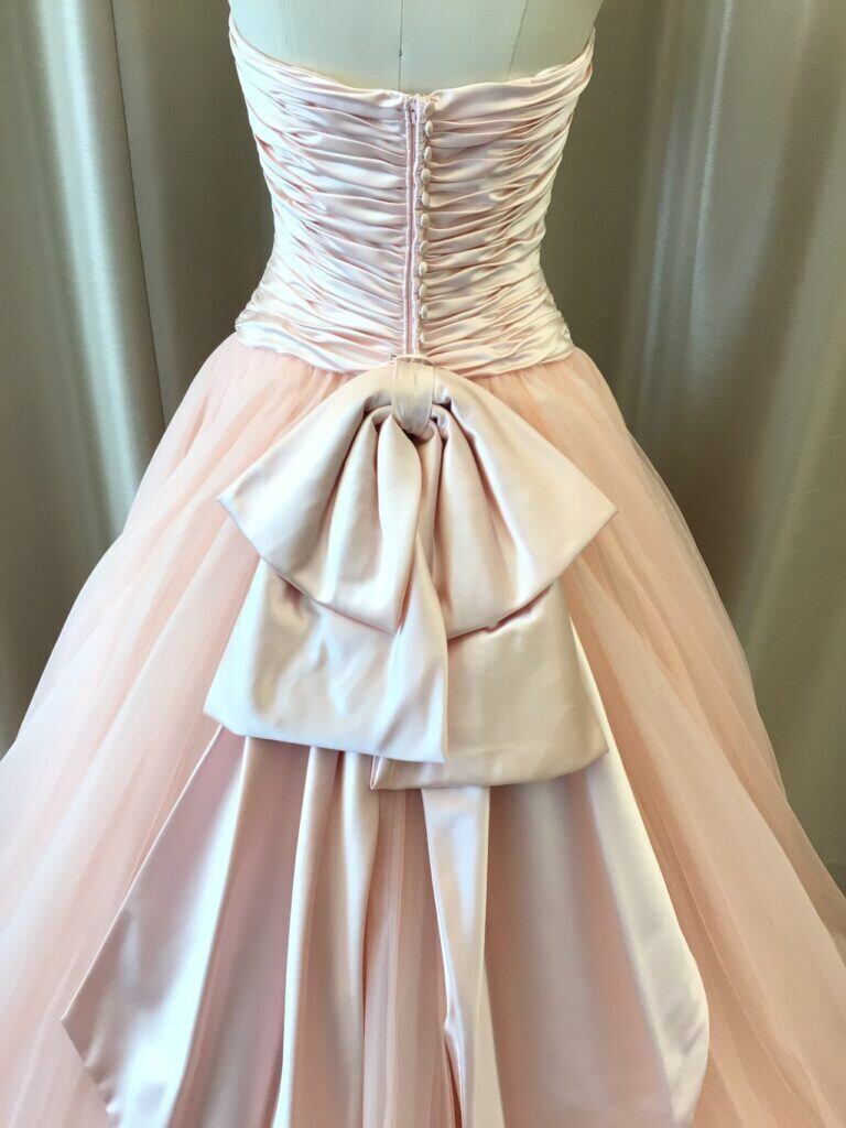 【お買得パニエ無料】カラードレス ピンク オーダーメイド ベアトップ 憧れのドレス ふっくら柔らかなバックリボン