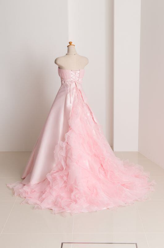 カラードレス ピンク オーダーメイド エンパイアライン 編み上げ 華やかなトレーン