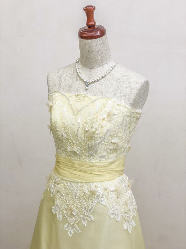 カラードレス レモンイエロー オーダーメイド 繊細レース サッシュベルト エアリー感
